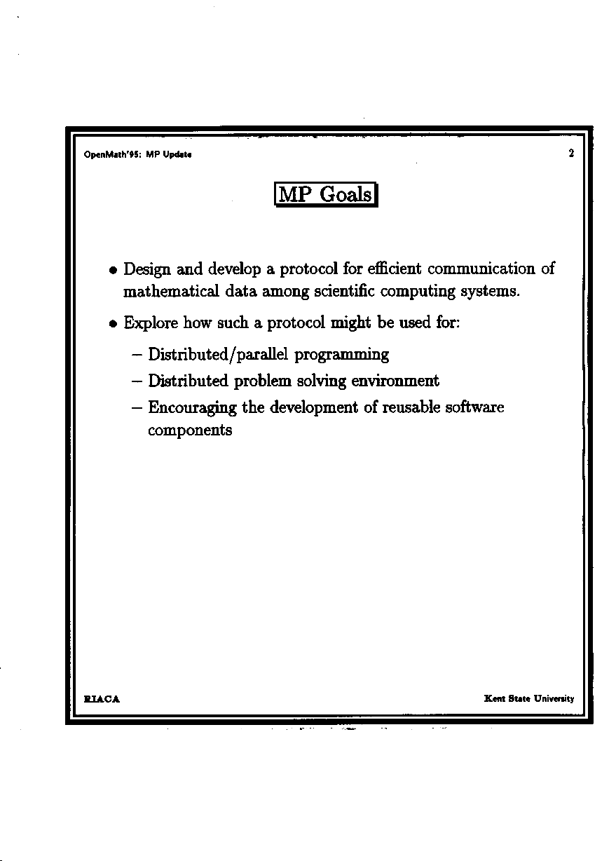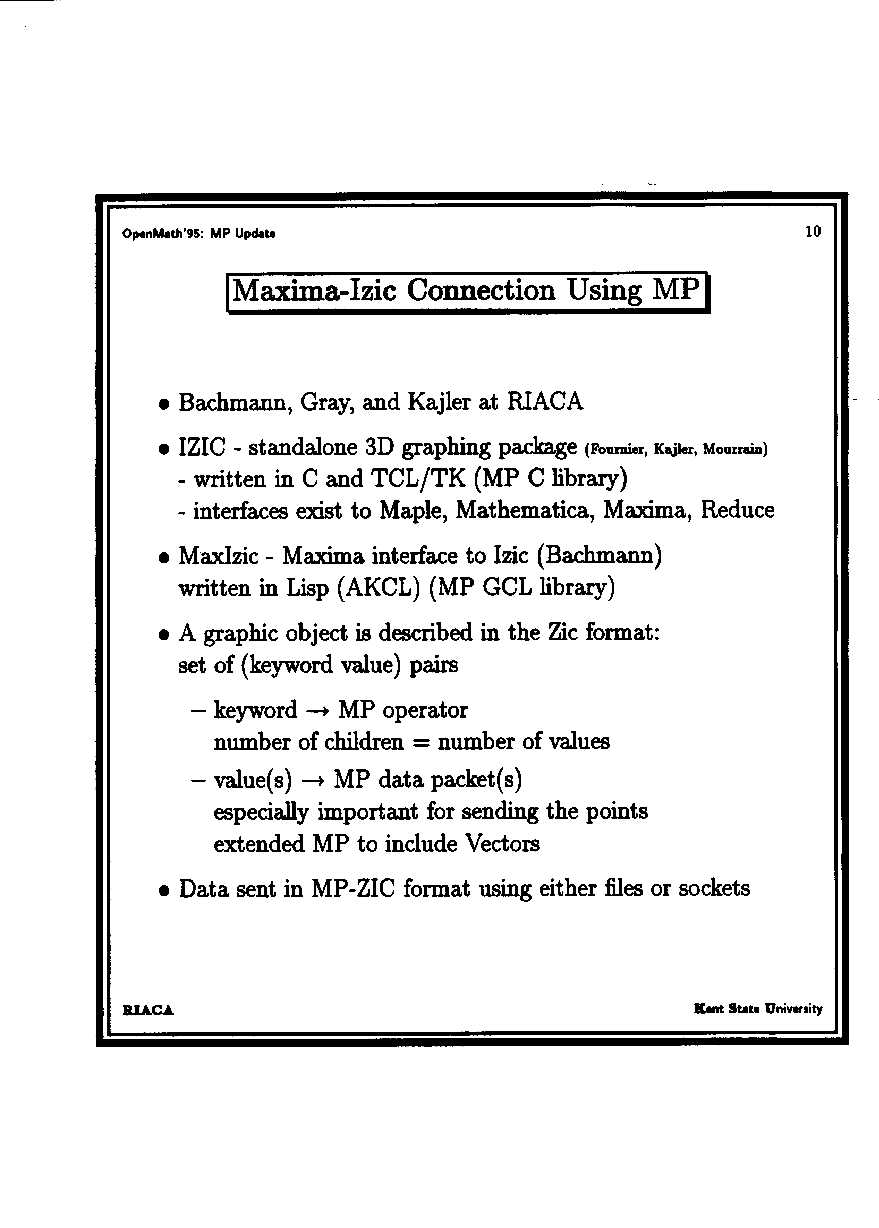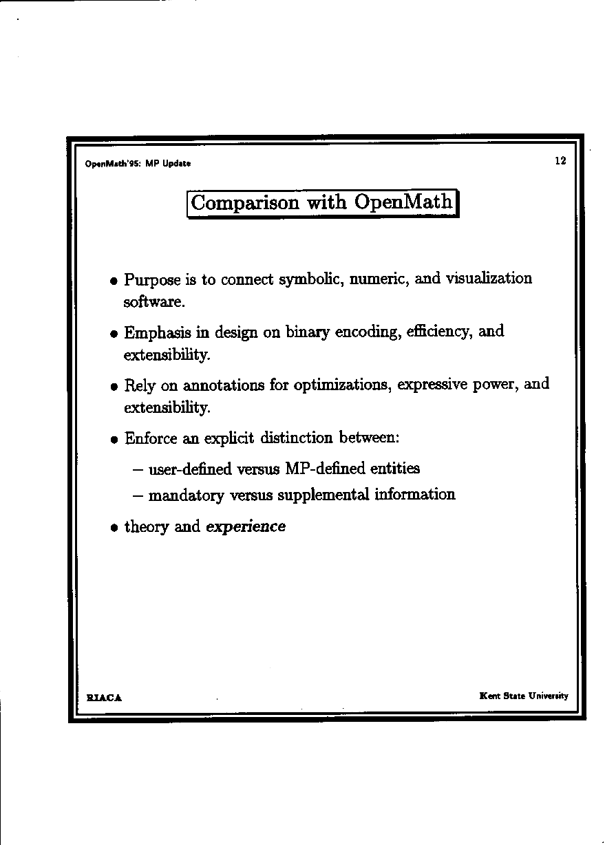 S. Gray: Update on MP and comparison with OpenMath