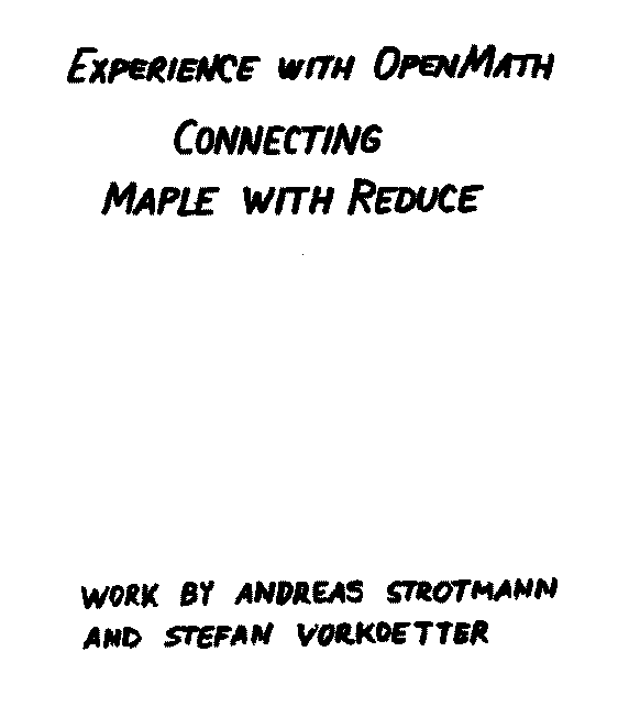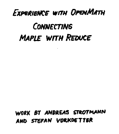 S. Vorkoetter: Experiences with OpenMath (demo REDUCE <--> Maple)